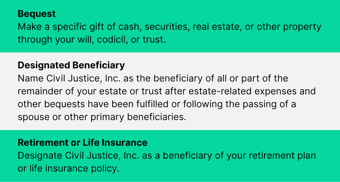 Civil Justice, Inc. is a 501(c)(3) non-profit organization incorporated in the State of Maryland. Your contribution is tax deductible to the fullest extent allowed by law. Copies of our current financial statements are available by writing to us at 120 E. Baltimore Street, Suite 2500, Baltimore, MD 21202 or by calling us at 443-853-1011. Documents submitted under the Maryland Charitable Solicitations Act are available from the Maryland Secretary of State, State House, Annapolis, MD 21401 or (410) 974-5534, for the cost of copying and postage.